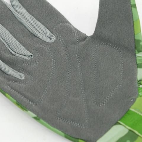 パッド付きクッション性で手に優しいグローブ。手の甲は、透湿防水の伸縮性スパンデックスを使用。